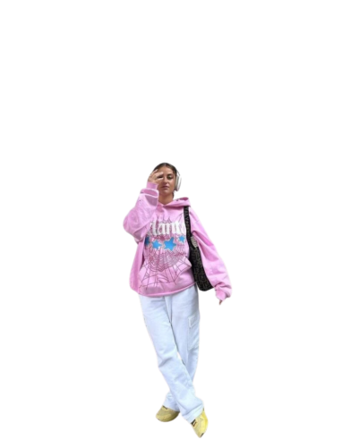 The Sp5der Atlanta Hoodie Pink works well for shoppers searching for a Sp5der Atlanta hoodie, pink graphic hoodie, or Sp5der web hoodie. The pink colorway pairs easily with black jeans, cargo pants, joggers, or sweatpants, making this hoodie a versatile piece for casual streetwear outfits.