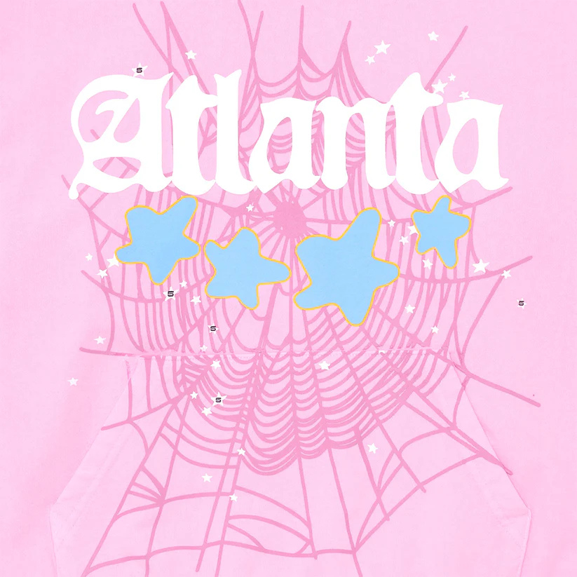 The Sp5der Atlanta Hoodie Pink represents the bold aesthetic of the Sp5der brand while paying homage to the cultural roots of Atlanta, the hometown of rapper Young Thug, who founded the streetwear label.