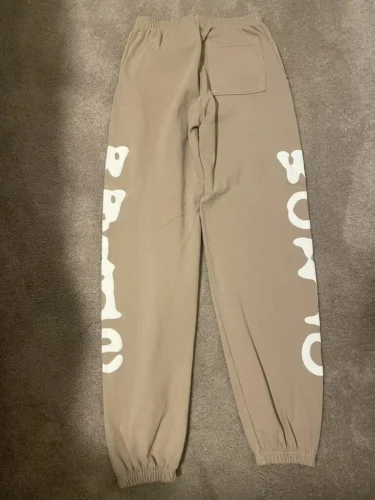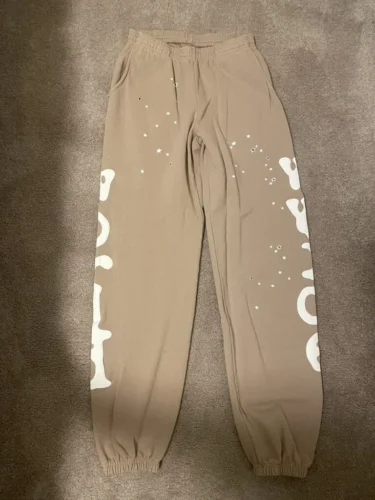 Sp5der Sweatpants Sand is an American streetwear brand founded by rapper Young Thug, known for blending hip-hop culture with bold graphics and expressive fashion design.